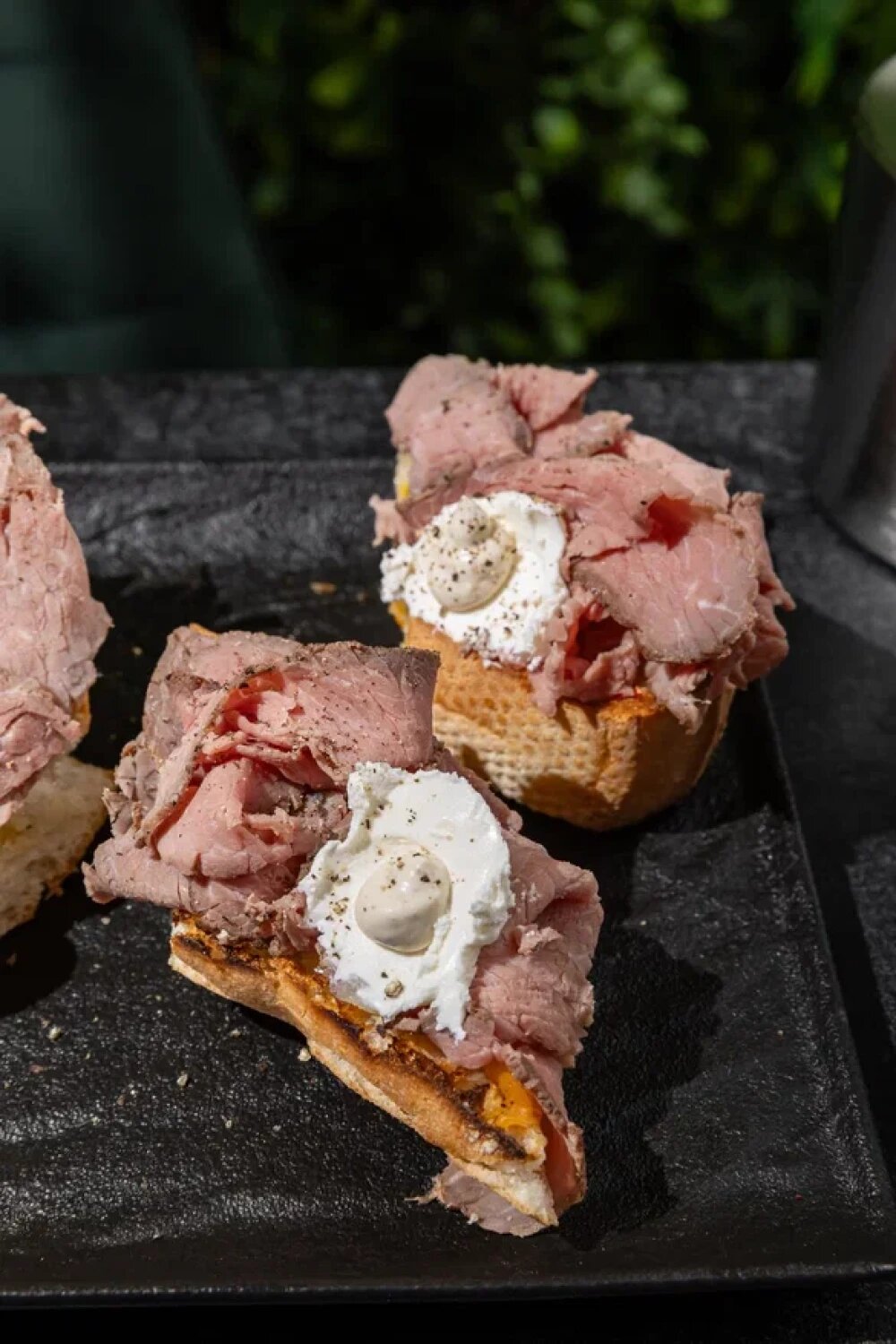 Чиабатта, луковый мармелад, ростбиф, крем-чиз, трюфельный майонез